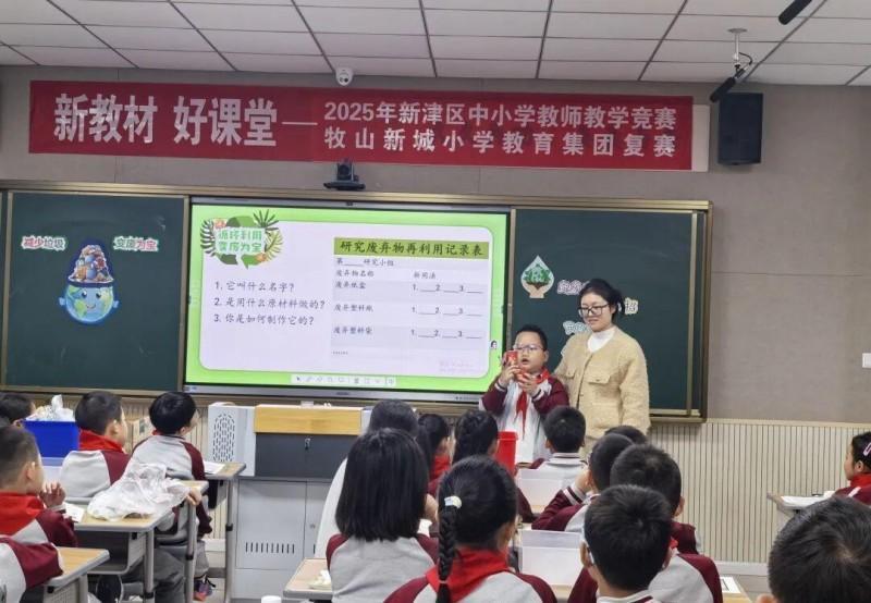 新津区牧山新城小学焦雯老师执教《减少垃圾,变废为宝》:从四年级学生生活中的垃圾问题切入,通过“垃圾变宝创意设计”等活动,探索垃圾分类与资源循环利用的方法,培养环保意识。