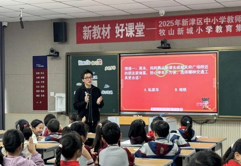 新津区希望城小学朱柯骏老师执教《四通八达的交通》:带领三年级学生在情境中探究不同交通工具特点后,结合实际需求,为特定旅行场景规划最佳路线与交通方案。