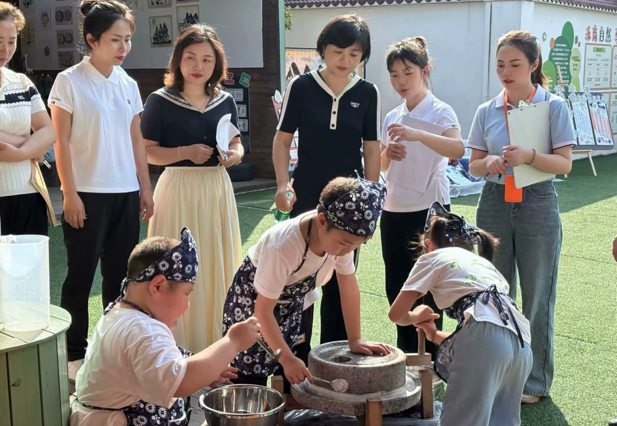 这次活动主要围绕集中教学和区域游戏活动研讨展开。首先观摩了幼儿园环境创设、早操活动和区域游戏活动。区域活动主要分为四组,定点观摩了《我是小小兵》《搭建小学》《豆子的魔力》《出彩的馒头》等户外区域游戏,观摩教师聚焦问题进行观察,活动后分组进行研讨,送教团队集体融入各组与老师们一起开展沉浸式研讨,碰撞思想,共寻提升的策略。