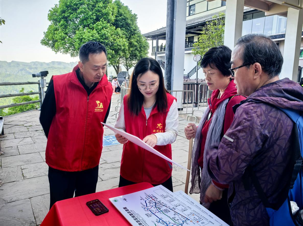 据了解,“五一”期间,剑阁县发动党员干部、青年学生、社区群众等组建“蜀道先锋”“巾帼文旅”等志愿服务队,在高铁站、景区入口、交通枢纽等人流密集区域设立志愿服务点53个,派出志愿者244人,提供咨询引导、行李搬运、应急救助等服务。此外,剑阁县推出“智慧+贴心”双线服务,志愿者们通过“剑阁旅游服务”小程序实时解答游客问题,还为老年游客、残障人士等特殊群体开通“绿色通道”,真正做到了志愿服务“零距离”,在景区各处绘就出一道道暖心风景线。