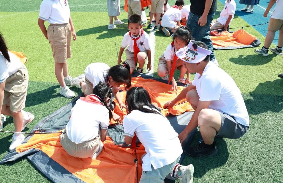 学校特邀四川省登山户外运动协会会长刘建、副会长黄杰等20多位专业教官为全校师生带来一堂生动实用的安全教育课。同时邀请到新津区教育局应急管理科科长秦连东、新津区教育局德体卫艺科科长胡文静、花源街道办事处主任徐智、花源街道办事处副主任张仟、新津区东篱路消防救援站副队长梁浩齐及新闻媒体的朋友们和全校家委会会长及家长代表一同观摩孩子们的生存探险课程主题教育实践活动。