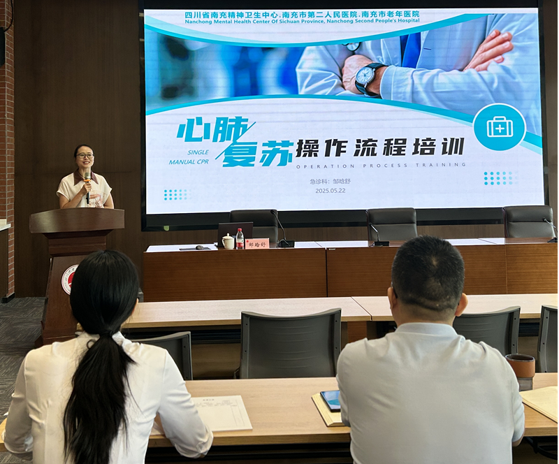 南充精神卫生中心急诊科邹晗舒副主任团队带来《守护你我,“救”在身边——急救专题培训》。通过生动的案例、现场演示和互动环节,详细讲解了心肺复苏、海姆立克急救法等急救技能,学员们积极参与实操练习,现场学习氛围浓厚。