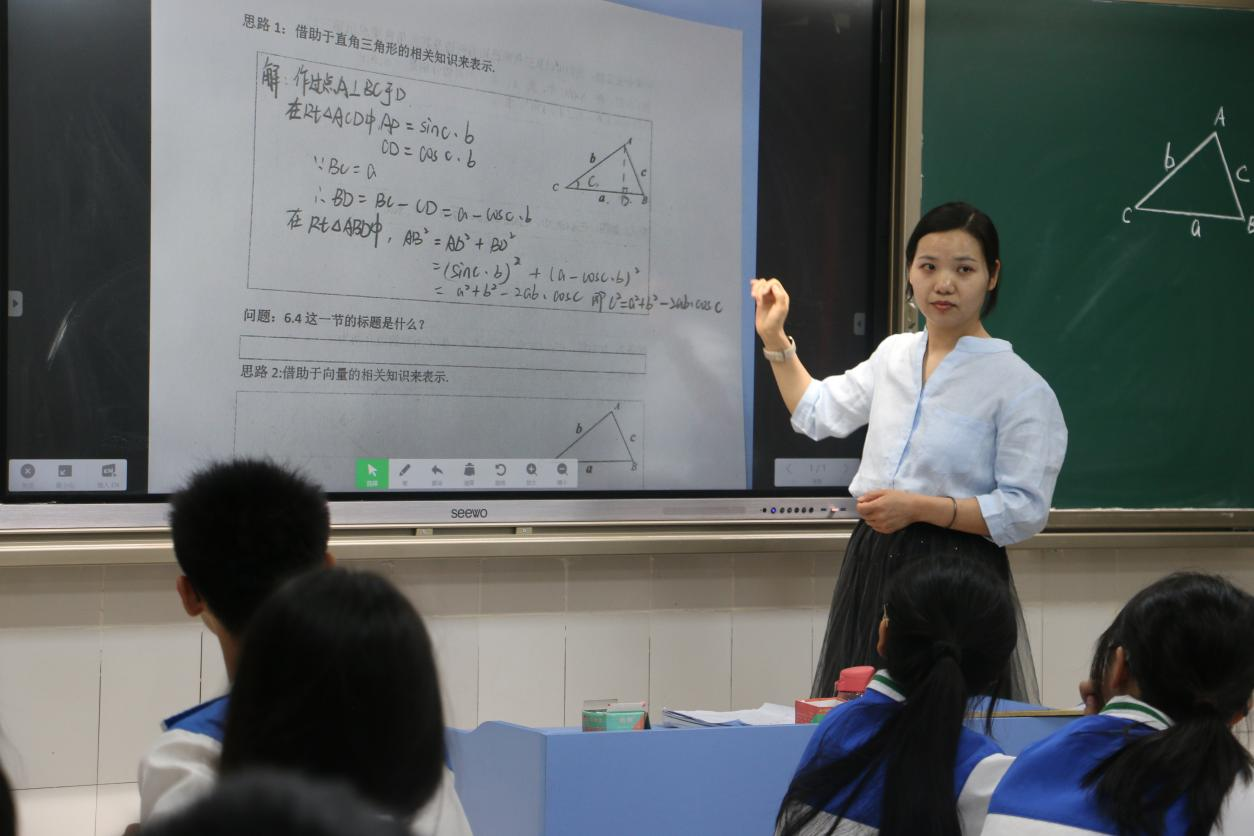 围绕《余弦定理》的同课异构,联合教研首先由“龙中”谢建梅老师精彩献课。她巧妙契合学生知识生成规律,从初中所学知识出发引发联想,以层层递进的设问引导学生思考,自然过渡到向量法的证明过程。这种从已知到未知的推导方式,让学生在原有知识体系上构建新认知,展现了扎实的教学功底与对学情的精准把握。