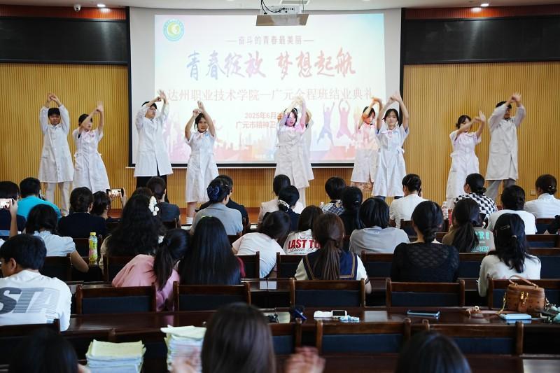 青春绽放,梦想起航。6月30日,广元市精神卫生中心举行2023级达州职业技术学院广元全程教学点临床医学和护理专业两个班结业典礼,欢送89名结业学生。