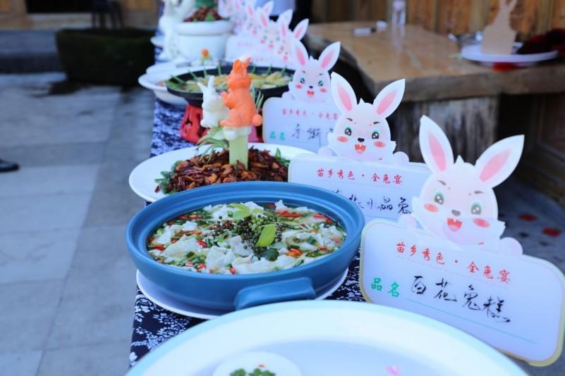 此外,现场还开展了“苗乡秀色”“苗乡好景”特色展示展销活动,集中展示了筠连水粉、刺梨系列产品、高山红茶、手工辣酱等特色农产品和玉兔山庄打造的“全兔宴”菜品。活动特别设置了“苗乡非遗文化展区”,集中展示苗绣、蜡染、苗族服饰等传统手工艺。四川省非物质文化遗产筠连县苗族刺绣代表性传承人杨代蓉现场演示苗绣技艺,游客可亲手体验蜡染制作,感受苗族纹样中“万物有灵”的文化内涵。