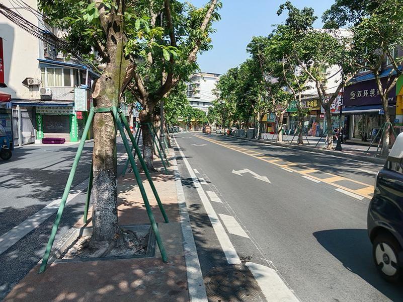 工程从细节入手:路基全部开挖,重新铺设沥青混凝土,平整度一次达标;新增排水设施,彻底解决雨天积水;修剪并加固小叶榕根系,既保留绿荫,又消除破坏;人行道全部更换破损地砖,并在路口适当加宽,老人、儿童、残障人士通行更便捷。