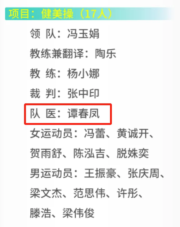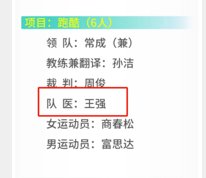 王强医生与谭春凤医生分别作为国家跑酷队队医和健美操队队医入选中国体育代表团成员。