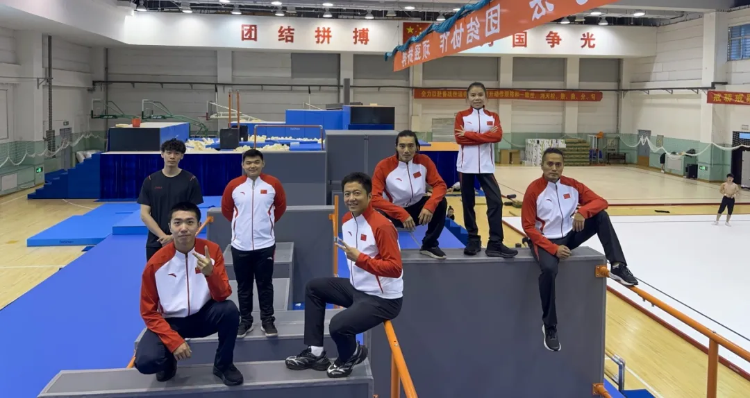 李睿(左三)作为驻队队医与国家跑酷队合影