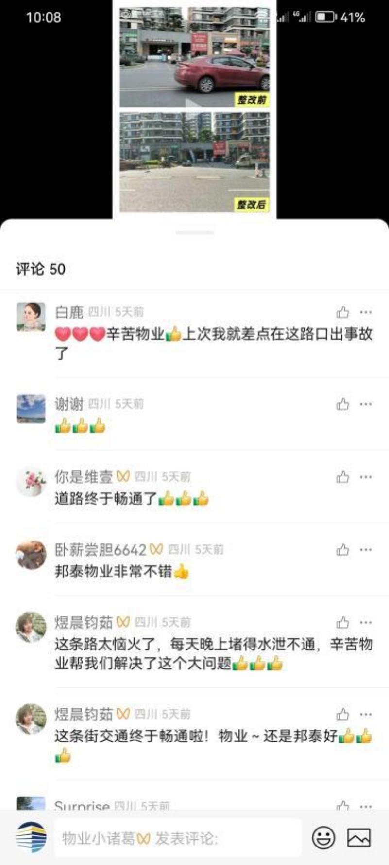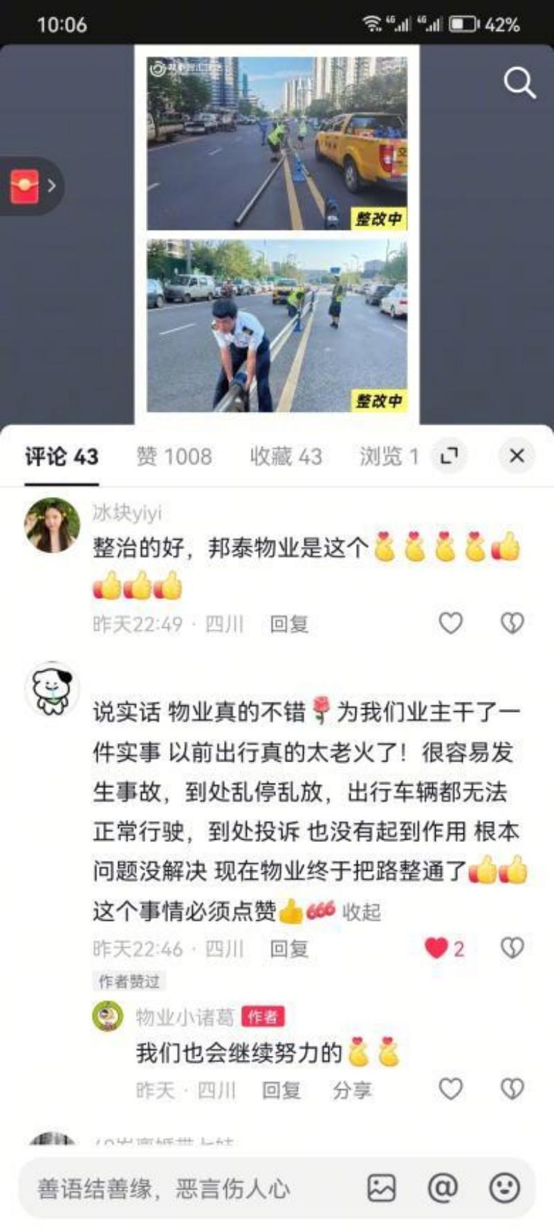 同时,他们还在道路显眼位置设置了临时禁停标识,提醒施工车辆规范停放。通过这一系列举措,有效遏制了施工车辆无序停放的乱象,为隔离杆的正式落地争取了时间,也让业主们提前感受到了道路通行状况的改善。