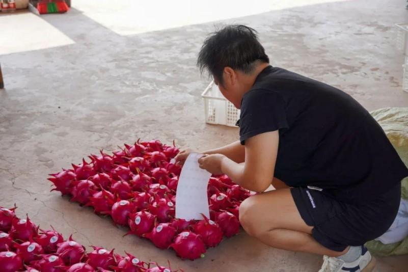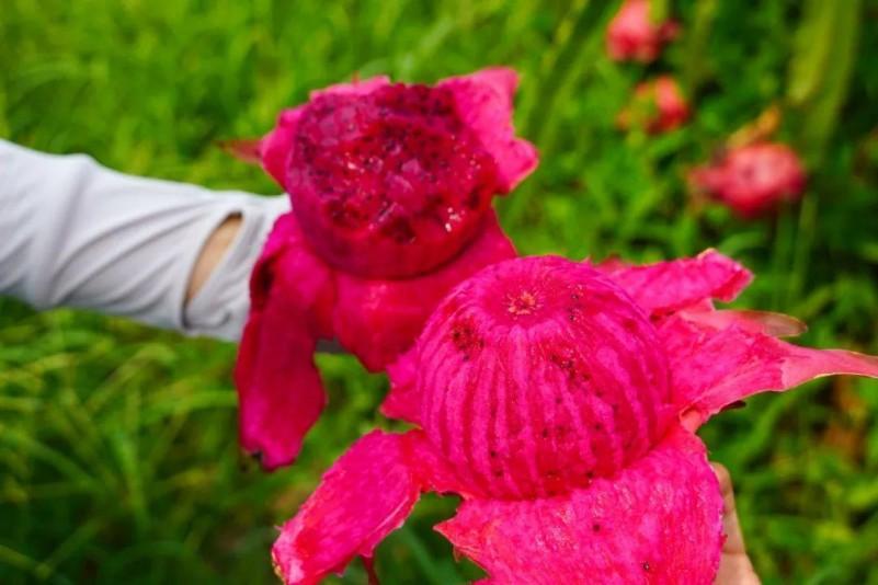 面对夏季高温和强紫外线,农场采取了科学的防护措施。每天凌晨4-5点进行浇水,并用草覆盖果实,避免阳光直射,确保果实的品质和品相。“在施肥方面,我们严格使用正规厂家的有机肥,杜绝未腐熟的农家肥,从源头上保障果品安全。同时,工作人员会定期巡查,发现病枝立即人工剪除并消毒处理,确保每一颗火龙果的健康品质。”张红说。