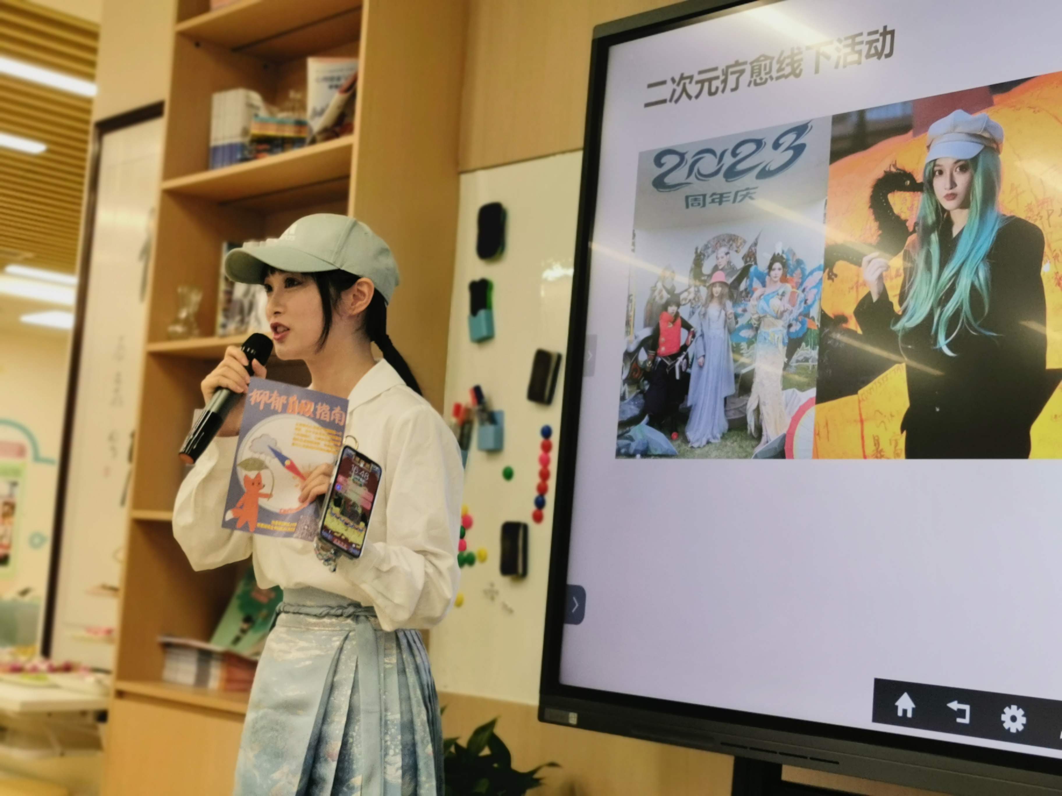 接下来,张骏教授主持了“(准)休学青少年社区心理健康促进活动支持及彩虹纽带志愿者赋能会”,进入共创者分享环节。他作为首席专家,首先分享了自己团队对青少年学习与情绪困扰的研究方法与成果,并提出了联合行动计划。四川省妇女儿童心理健康服务中心代表赵昱欣主任详细介绍了智慧化社会心理服务体系对该项目的支持;四川省蔡晓莉名师工作室则分享了家长与心理咨询师工作营的CBT(认知行为疗法)实践经验;其他共创者也带来了精彩的分享,涵盖了“能达”情绪困扰青少年学习教练、“好奇教育”青少年个性化成长项目、曹莉亲近自然疗愈、二次元心理疗愈项目、健康生活与疗愈文化博览会、艺术与医学健康设计研究与实践等多方面的创新举措,体现了项目在多元化合作中的广泛影响力。在随后的发言环节中,盛乐社区、高新区社会组织孵化培育中心相继致辞,她们对项目的公益性及对社区青少年心理健康的积极影响给予了高度评价,并期待项目能够成为促进青少年心理健康的重要平台。来自成都市教科院附属学校和石室天府中学的教师代表分享了他们在实际教学中遇到的青少年心理健康问题,以及对项目的期望。他们表示,学校与社区联动,整合社会资源为青少年提供心理支持,是解决学生心理困扰的重要途径。《川观新闻》作为媒体监督对项目的可信度表示认可,项目督导也对项目的可持续发展提供了建设性建议。最后,主办方为与会专家及志愿者颁发了聘书。“我的孩子已经复学两年,”一位16岁青少年的母亲作为志愿者来到现场,“我今天非常感动,通过这个项目,知道社区还为我们的家庭、孩子做了这么多,我和孩子都是受益者,希望通过加入项目的志愿服务队伍尽一份力,让更多孩子重新走上他们的快乐人生。”
