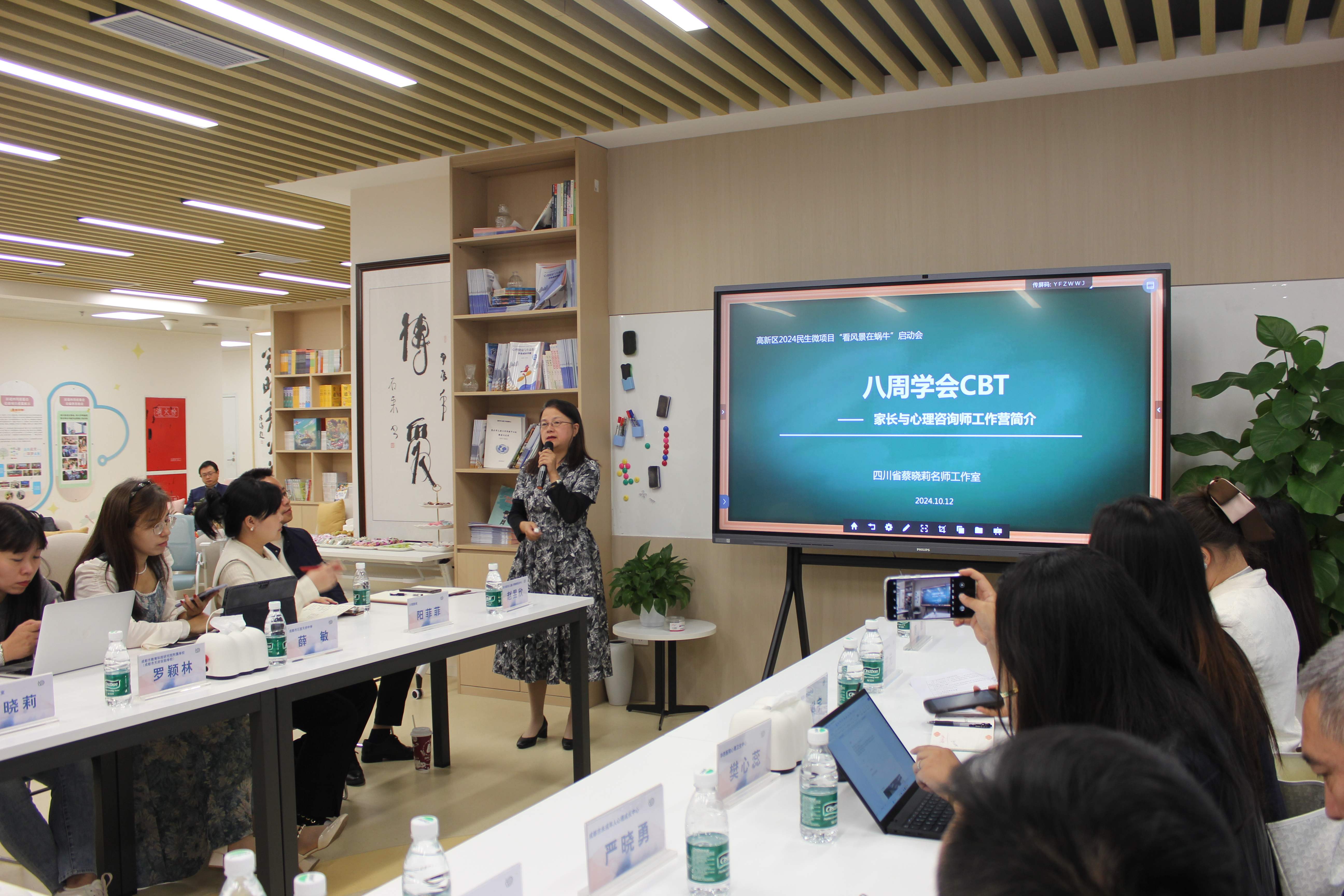 2024年10月12日,成都高新区石羊街道盛乐社区“看风景的蜗牛——(准)休学青少年社区心理健康促进计划”项目启动会在四川省妇女儿童心理健康服务中心召开,石羊街道与盛乐社区相关工作人员、心理健康专家、教育工作者、志愿者及媒体代表60余人出席。
