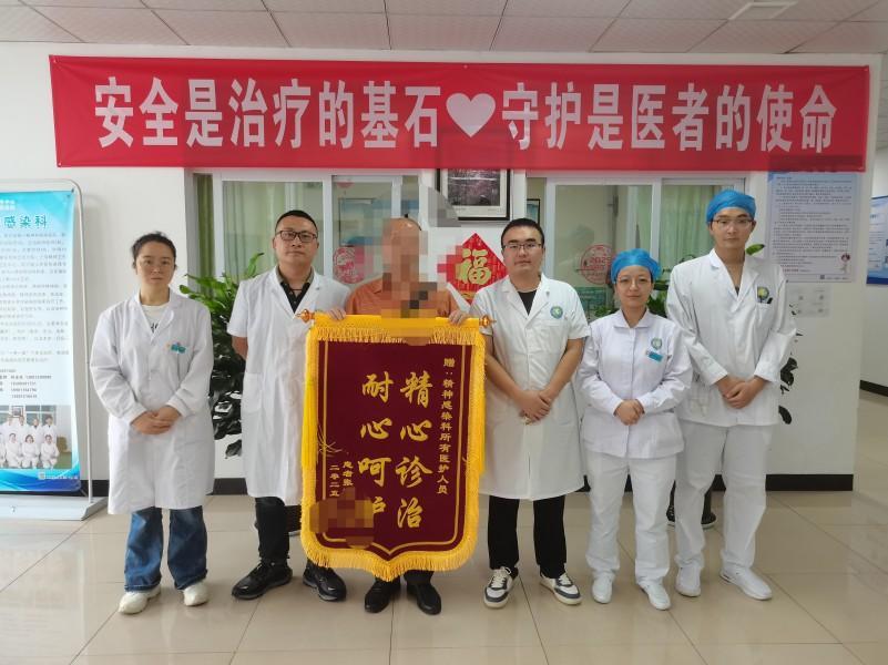 在经过系统、规范的治疗后,患者张先生的情绪趋于平稳,认知功能恢复,终于意识到自己疾病期的状态,并对医护人员的付出深感愧疚与感激。这面锦旗,是他康复后特意要求制作的,是他重回清醒世界后最想表达的心声。