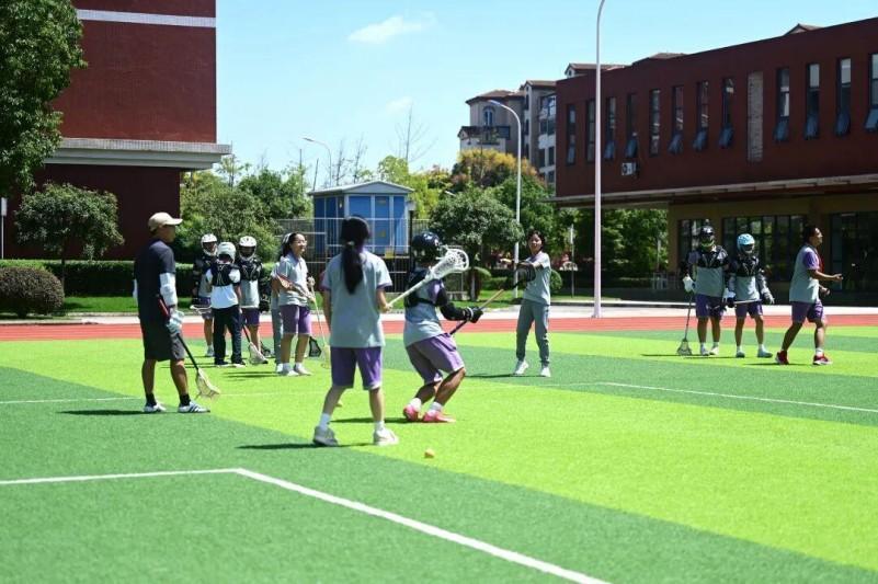 “快!接球!”在彭州市嘉祥外国语学校的绿茵场上,网棒挥舞、小球飞传,阵阵呐喊声中,一群身穿运动服的学生正在激烈地进行棍网球对抗训练。队员们身手矫健,火力全开,球杆仿佛与身体融为一体,走位、抢球、断球、防守、进攻......大家默契十足。这项在国内尚属小众的运动——棍网球,如今已成为校园里最具活力的风景。