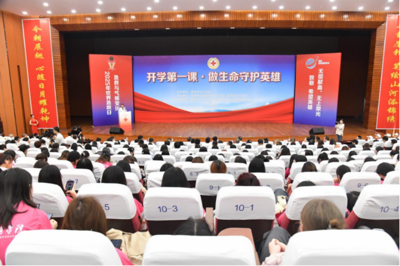 在第26个“世界急救日”和第11个“世界骨髓捐献者日”到来之际,9月19日上午,南充市2025年“开学第一课·做生命守护英雄”主题宣传活动在南充职业技术学院音乐厅启动。南充市人民政府副市长、市红十字会会长欧阳梅讲话并宣布活动启动,南充职业技术学院党委书记黎明致开幕词,党委副书记、苟国旗出席活动。市红十字会党组书记、常务副会长何铮主持开幕式。
