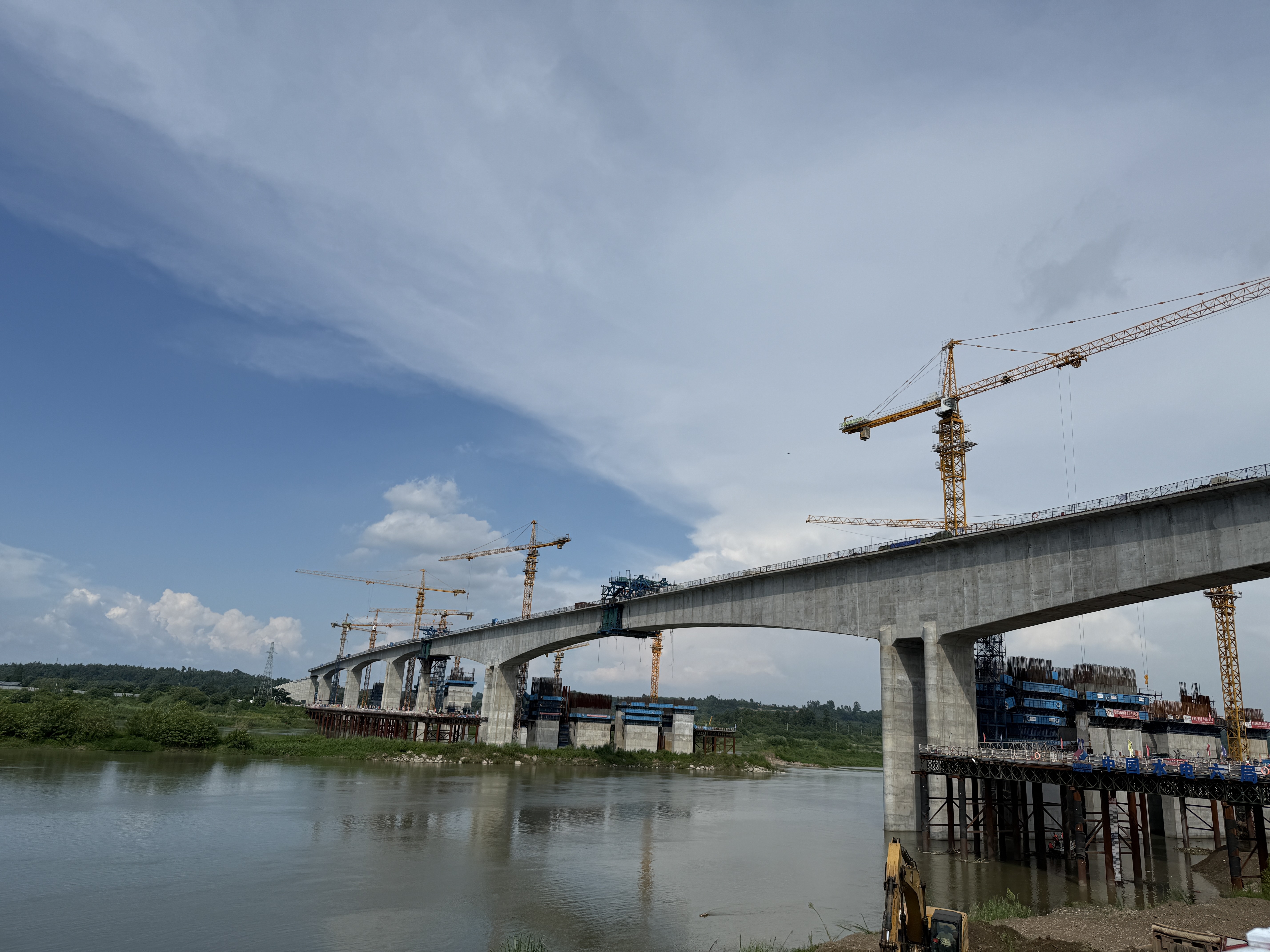岷江特大桥全长768米,其中横跨岷江的主跨达198米,宛如一条钢铁巨龙凌空飞跃。主跨合龙,是将两侧悬臂梁段通过混凝土浇筑连接成整体的关键步骤,这短短2米的合龙段,却决定着整座大桥的“生命线”。