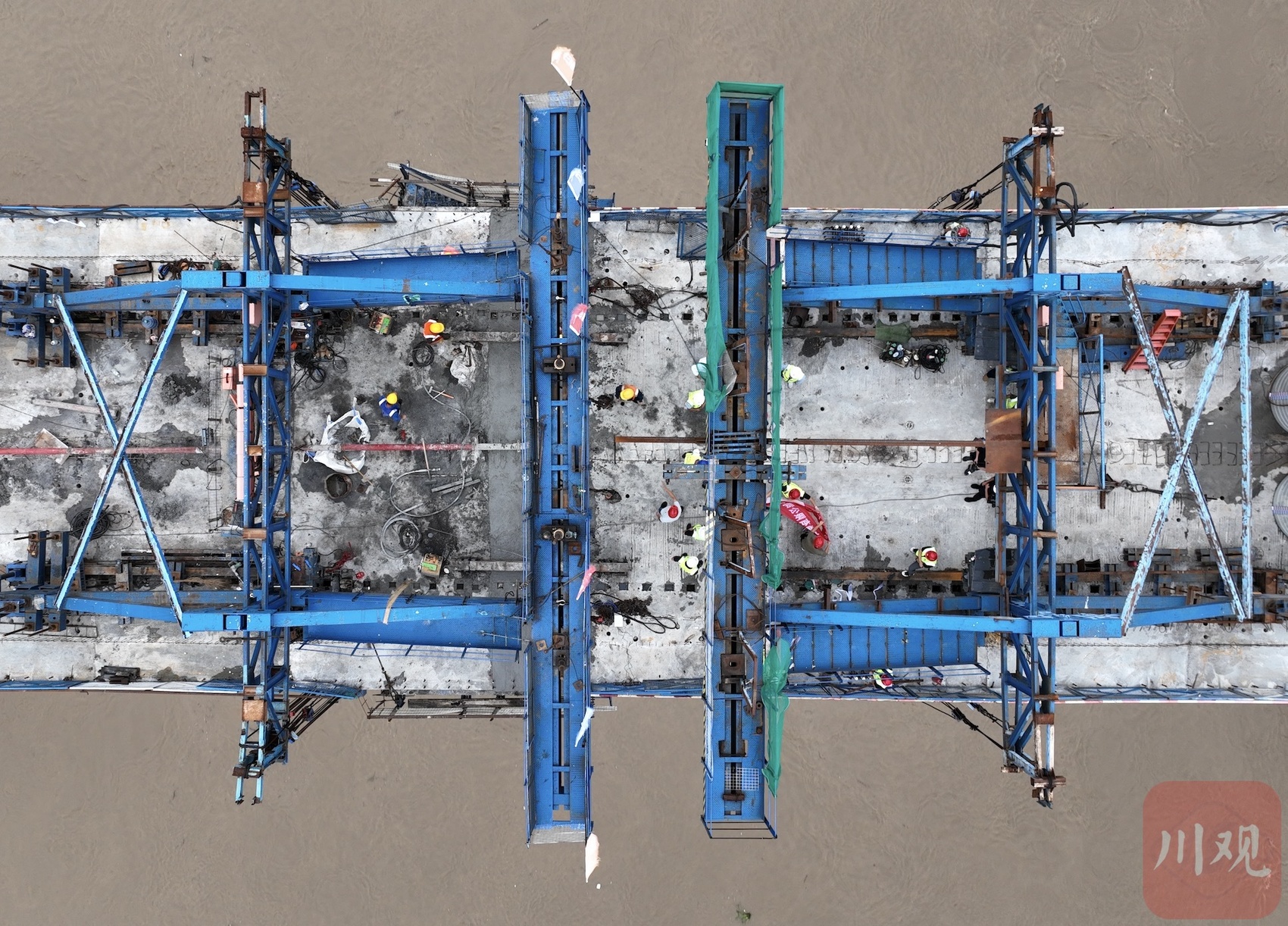 “首先是在岷江上建桥墩。”黄铁回忆,桥墩的建设始于2023年初,但建设一开始就遇到了挑战,“岷江水位高、水速快,必须在汛期来临前,完成桥墩的水下施工内容。”