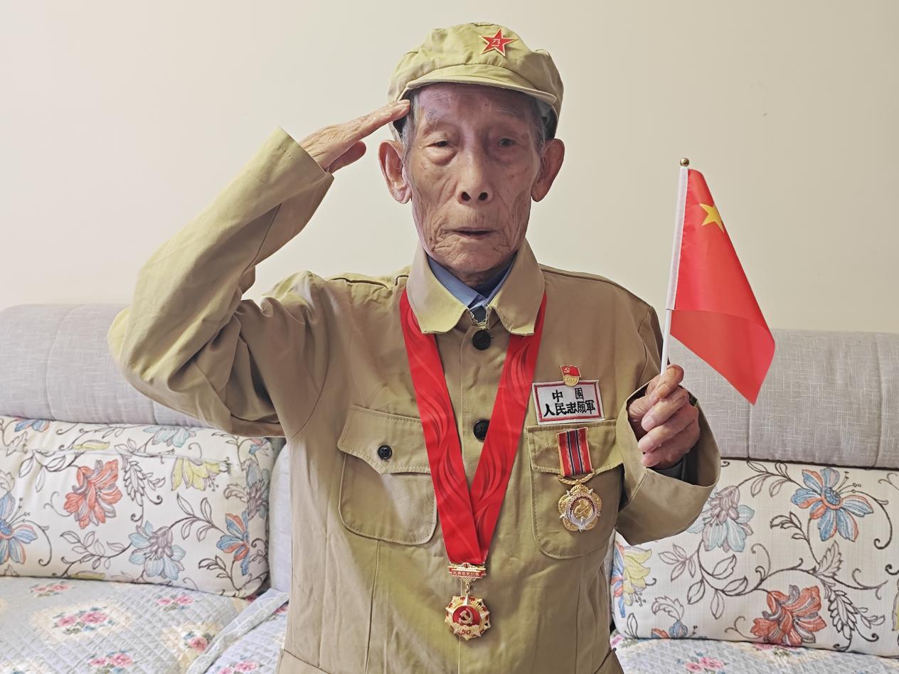 当志愿者们拿出提前准备的国旗,准备给老人照相时,杨兴元还特意换上珍藏多年的老式军装,小心翼翼地将"优秀射手"奖章别在胸前,挺直腰板对着镜头敬礼。“愿以烽火岁月的铮铮誓言,让胜利的战旗飘扬晨曦,这盛世之中华如战友所愿!如民所愿!如时代所愿!祝祖国妈妈,生日快乐。”面对镜头,老人再次说出这句深情告白,眼中闪烁着激动的泪光。