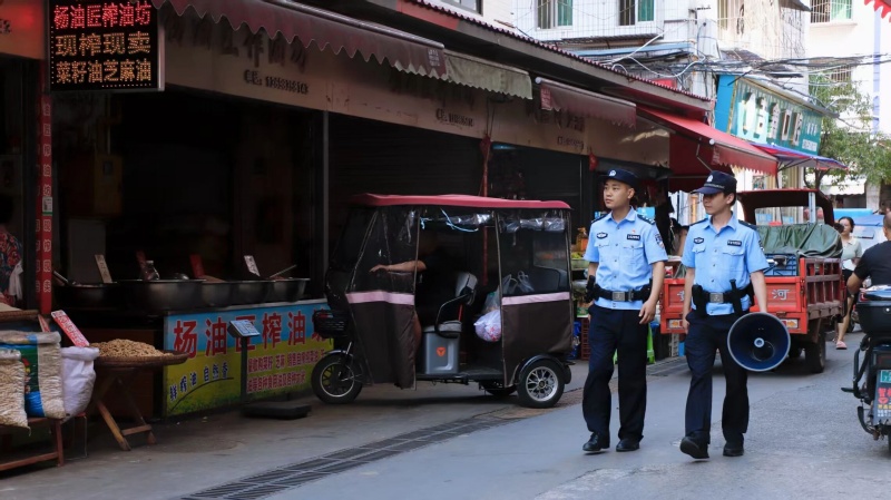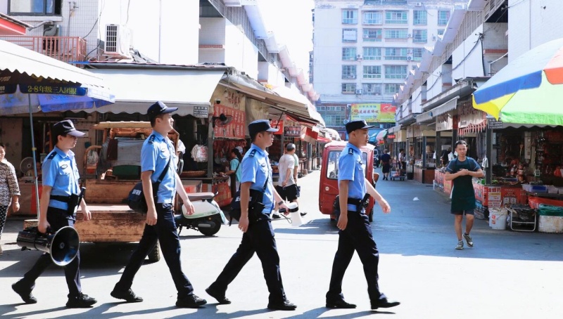 图1:嘉禾派出所“辰时警务”巡逻组在潮汐市场开展巡逻