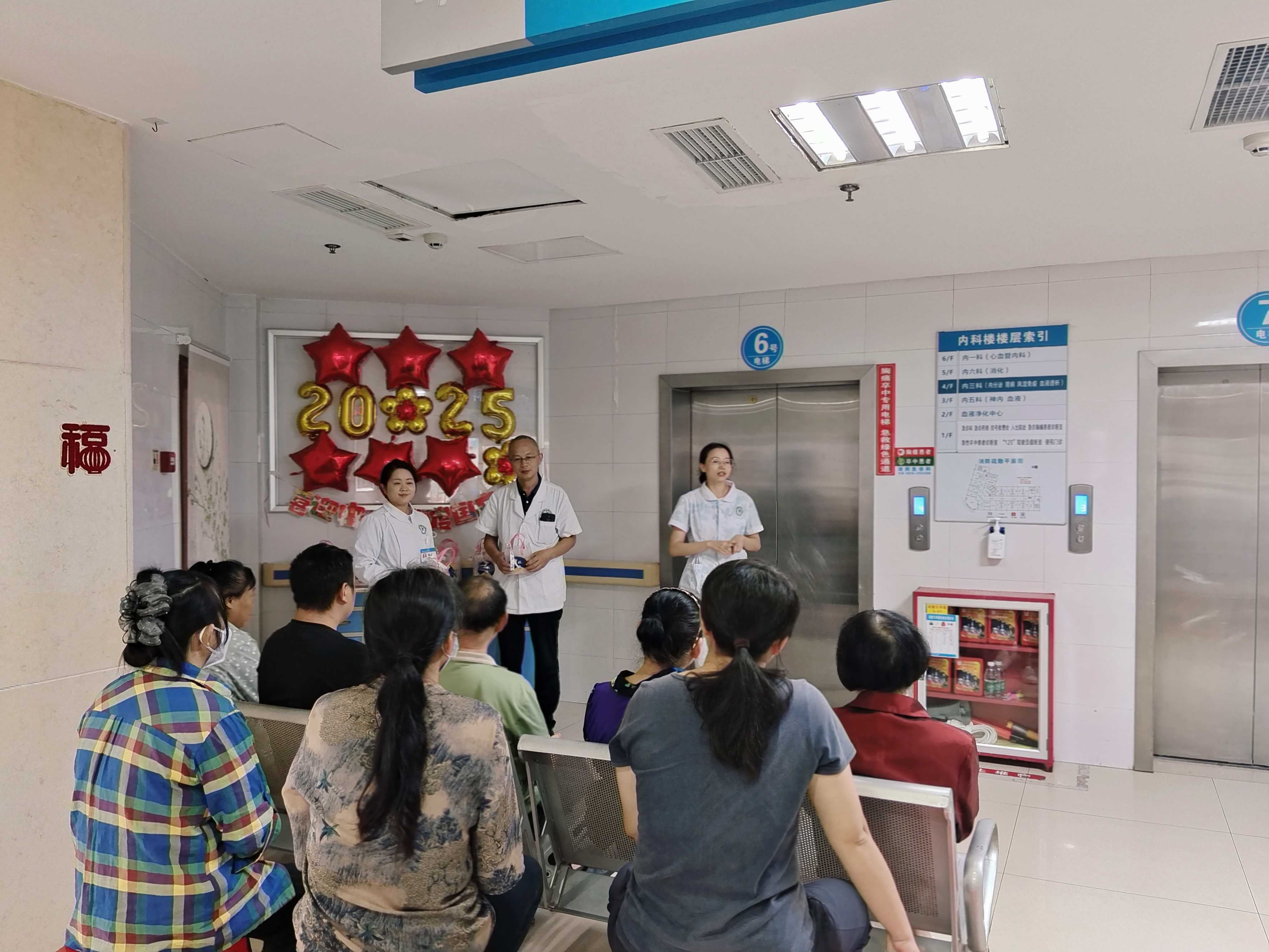 除了传递节日的问候,更为重要的是送上健康的关怀。针对节日期间饮食、作息易不规律,尤其是糖尿病患者面临的健康挑战,科室特别设置了“甜蜜有度,健康过节”健康讲座。讲座由内三科护士长黄丹主持,她以“送上节日礼物与健康钥匙,助大家锁住快乐与健康”的开场,迅速拉近了与听众的距离。