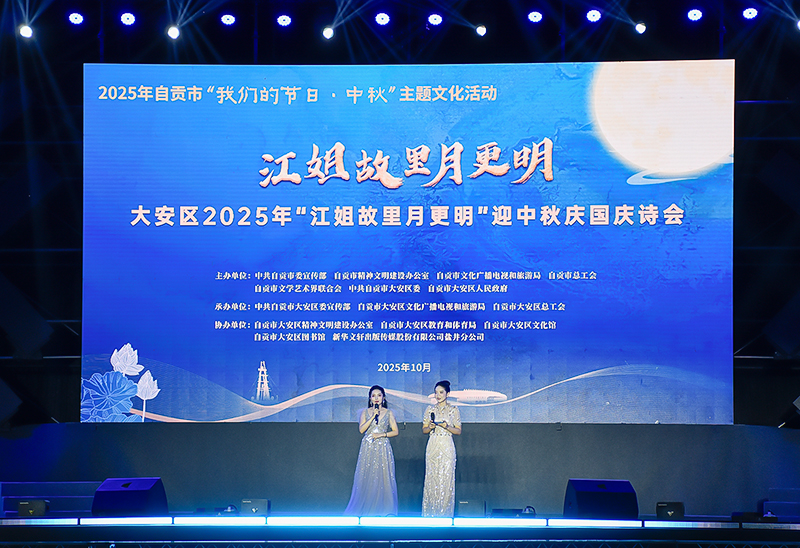 10月1日晚,2025年自贡市“我们的节日·中秋”主题文化活动暨大安区2025年“江姐故里月更明”迎中秋庆国庆诗会在大安区大山铺镇春风里举行,活动旨在弘扬传统文化,营造欢乐祥和、诗意盎然的节日氛围。