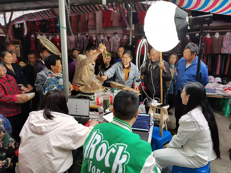线下市集聚人气,云端直播促畅销。千坊1376美食节汇聚近50家本土小吃摊位,以地道风味营造浓厚节日氛围,有效拉动线下消费。线上市场同步活跃,河口镇“竹编市场”的主播龚勋通过多平台直播推广竹编工艺品及本地农特产品,其直播间销售额达30万元,部分产品销量同比增长超两倍。全县电商企业同步开展多平台促销,通过“家乡味礼盒”、线上满减、线下自提等形式推动农特产品线上销售,推动“电商+非遗+农特产品”模式持续深化发展,为县域经济注入新活力。