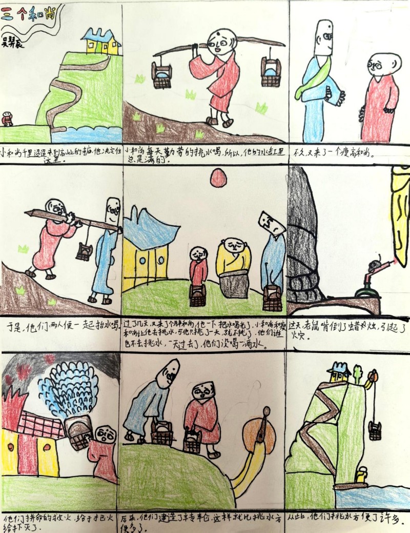从《三个和尚》到《梁山伯与祝英台》,从《九色鹿》到《孟姜女哭长城》,一幅幅充满童真童趣的连环画作品在孩子们手中诞生。他们不仅画出故事的情节,更融入了自己的理解与想象,让经典故事焕发新的趣味。