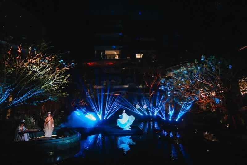 当空灵击缶的梵音如泉,与园林中错落的水景、叠石共振相和,一场心栖山海的艺术视听盛宴在仙圃七庭中的云漪庭缓缓展开。音与景不再分离,而是随着千年古器奏响的袅袅梵音,共同构筑出一处可听、可感、可栖的能量场域,漾出了新绿色·J57半岛的“养心”哲学主张——生命栖居,终要回归至日常的安定与从容。