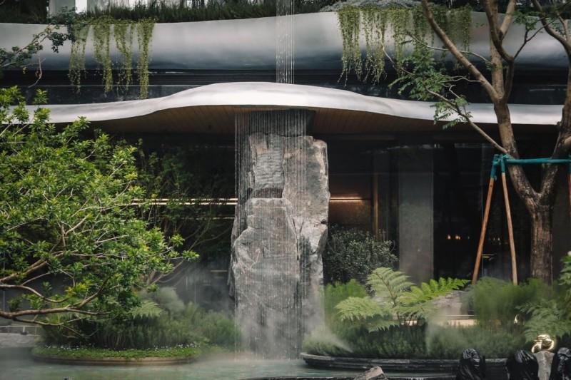 从步入开放仪式现场的那一刻开始,就踏入了新绿色·J57半岛以《山海经》为灵感精心构建的沉浸式景观序列,仿佛穿越至灵境之路。凤凰清鸣如弦引路,昆仑山门巍然矗立,伴随缥缈仙音,一场名为“净手礼”的入庭仪式静穆展开,涤尘静心,水声泠泠中,行走于神话与现实交织的边界,从纷繁日常步入心灵谧境的意象过渡。