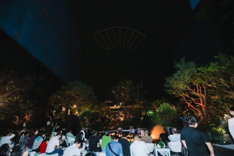 当夜幕低垂,腾空而起的无人机光影大秀点亮了半岛夜空。天光为卷,勾勒出凤凰归巢、半岛绽放等意象,光影流转间,《山海经》中的灵兽图腾与现代建筑相映成趣,神话的瑰丽与当代的张力在空中对话,传统文脉与未来想象在此刻共鸣,带来的不仅是视觉的盛宴,更是新绿色·J57半岛理念的生动注脚——承袭东方之魂,构建面向未来的生活图景,让每一位观者于光影交错间,看见理想生活的模样。