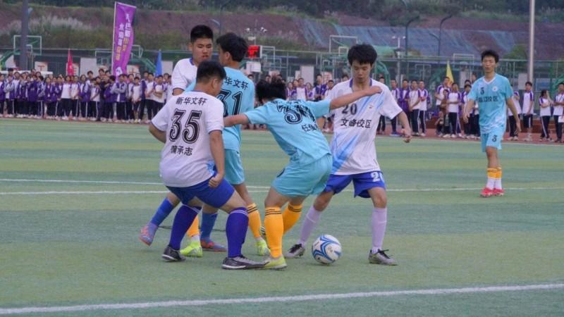 根据2025年南充⾼中“⽂轩·诚勇杯”校园⾜球联赛竞赛规程,比赛采用 11 ⼈制⾜球竞赛规则,五个校区代表队双循环对阵,所有球员均为非体育特⻓⽣。比赛时间为每周日下午,确保学生正常学习,将持续到12月中旬。