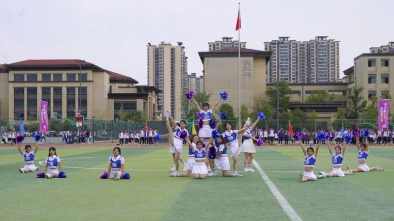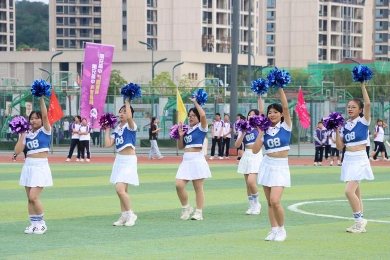 中场休息时间,南充高中临江校区啦啦队带来精彩的助威表演。