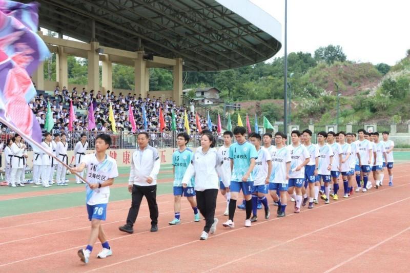 秋风送爽燃赛场,少年逐梦书华章。2025年10月11日下午,南充高中(南高)“文轩·诚勇杯”校园足球联赛(“校超”)在临江校区正式开幕。学校党委书记涂刚,党委副书记、校长王尚明以及学校领导班子,各校区副校长,辖区派出所、社区等单位代表莅临开幕式,南充高中五校区足球队伍齐聚一堂,在开幕式后拉开首轮对决:临江巨浪队VS文峰冲锋队。