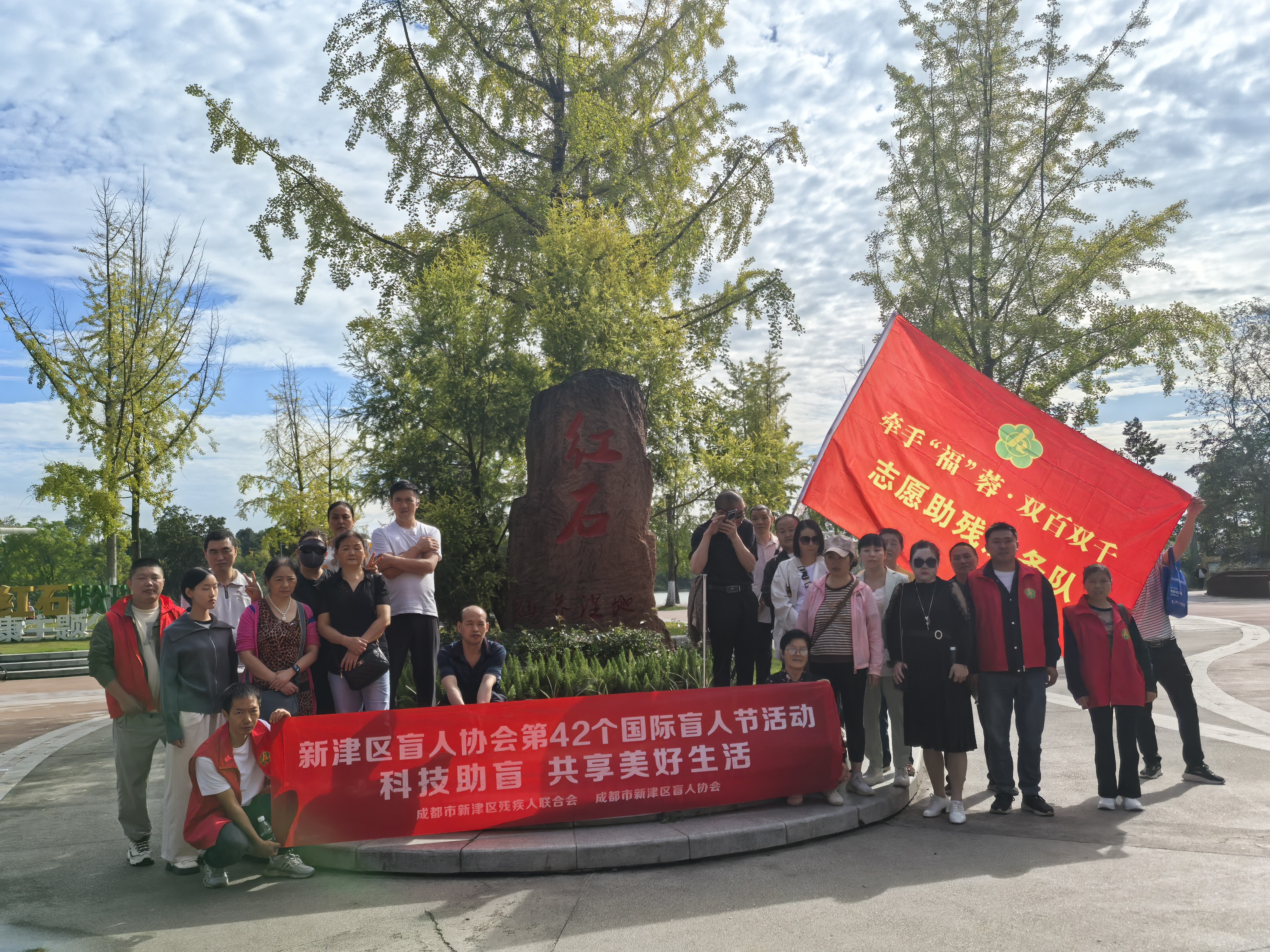 2025年10月15日是第42个国际盲人节。为迎接这一节日,10月13日,新津区盲人协会在区残联指导下,组织开展了以“科技助盲,共享美好生活”为主题的国际盲人节活动。20余名视障朋友代表和助残志愿者齐聚新津红石涵养湿地公园,共同度过了一个温暖而充实的节日。