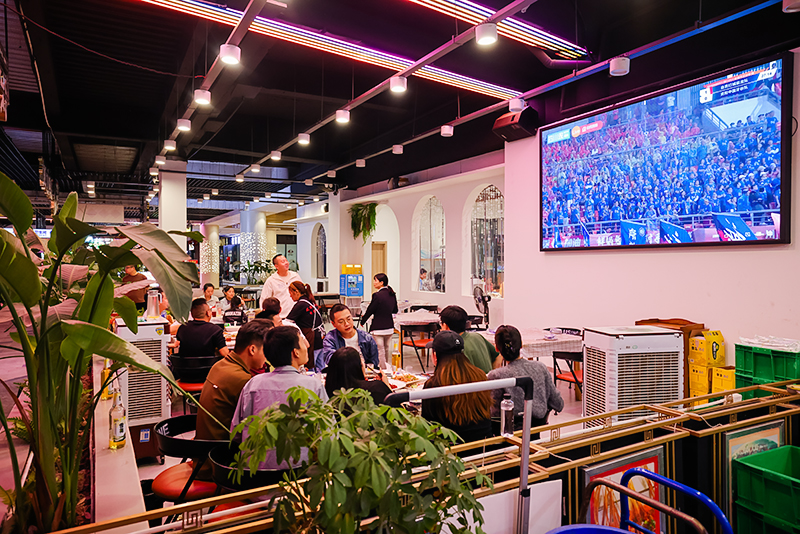 由于当天下雨,不少市民选择边用餐边关注比赛直播,“看球吃饭两不误”的消费场景随处可见,让各餐饮商家都期盼我市能多举办这样聚人气、促消费的比赛。