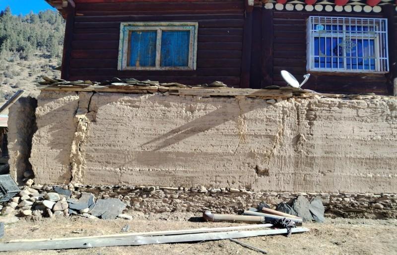 去年年底,宜宾学院派驻新龙县拉日马镇松多顶村的驻村干部徐慎颖传来紧急消息:村民登巴达子的住宅出现裂缝并伴有异常声响,屋角崩裂坍塌、房柱倾斜,经专业人员评估为C级危房。当时凛冬已至,登巴达子一家五口被迫撤离住宅,亟待重建住房以抵御严寒。登巴达子家庭经济状况极为拮据。家中两位女儿分别处于高中就读和阑尾炎术后治疗阶段,家庭无牲畜饲养,仅靠采集虫草和菌类维持生计,收入微薄且不稳定,几乎没有存款。即便当地政府提供了建房补贴,他们仍需筹措部分重建费用,这让本就困难的家庭陷入了绝望。