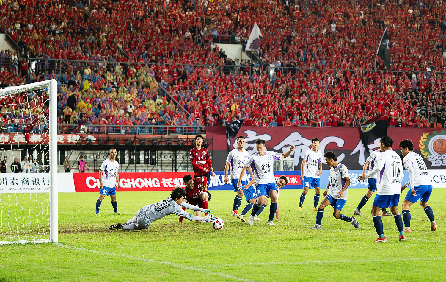 当晚的自贡南湖体育中心人声鼎沸,20706名球迷激情满满地为两支队伍摇旗呐喊,比赛在绵绵细雨和欢呼声中拉开帷幕。
