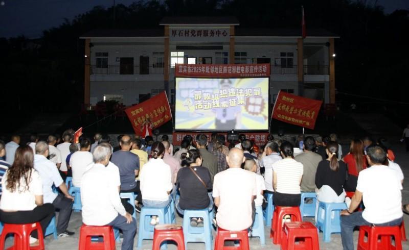 为增强偏远山村群众的反邪教意识和能力,引导群众自觉防范和抵制邪教,10月10日晚,宜宾市叙州区委政法委联合宜宾市映三江农村数字电影院线有限公司在横江镇厚石村开展2025年宜宾市叙州区反邪教警示宣传公益电影进基层活动。