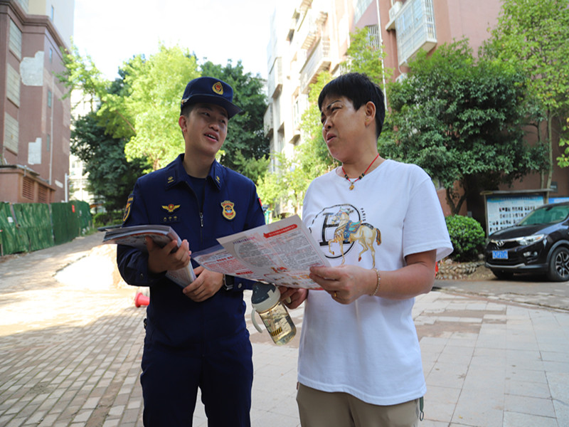 在宣传过程中,大队宣传人员首先向居民发放了《消防安全手册》宣传资料,随后为小区居民讲解消防法律常识、如何正确报警、各类初期火灾的正确处置方法,以及家庭日常用火、用电、用气安全,电动车充电时注意事项,火灾逃生自救,灭火器使用方法等消防安全知识。随后,宣传人员提醒居民群众不压埋、圈占、损坏、挪用、遮挡消防设施和器材,要及时清理楼道间、阳台等地杂物,确保安全出口、疏散通道及小区消防车通道畅通,努力为家人及邻里创造良好消防安全环境。最后,大队宣传人员还与小区物业根据小区实际情况进行了座谈。