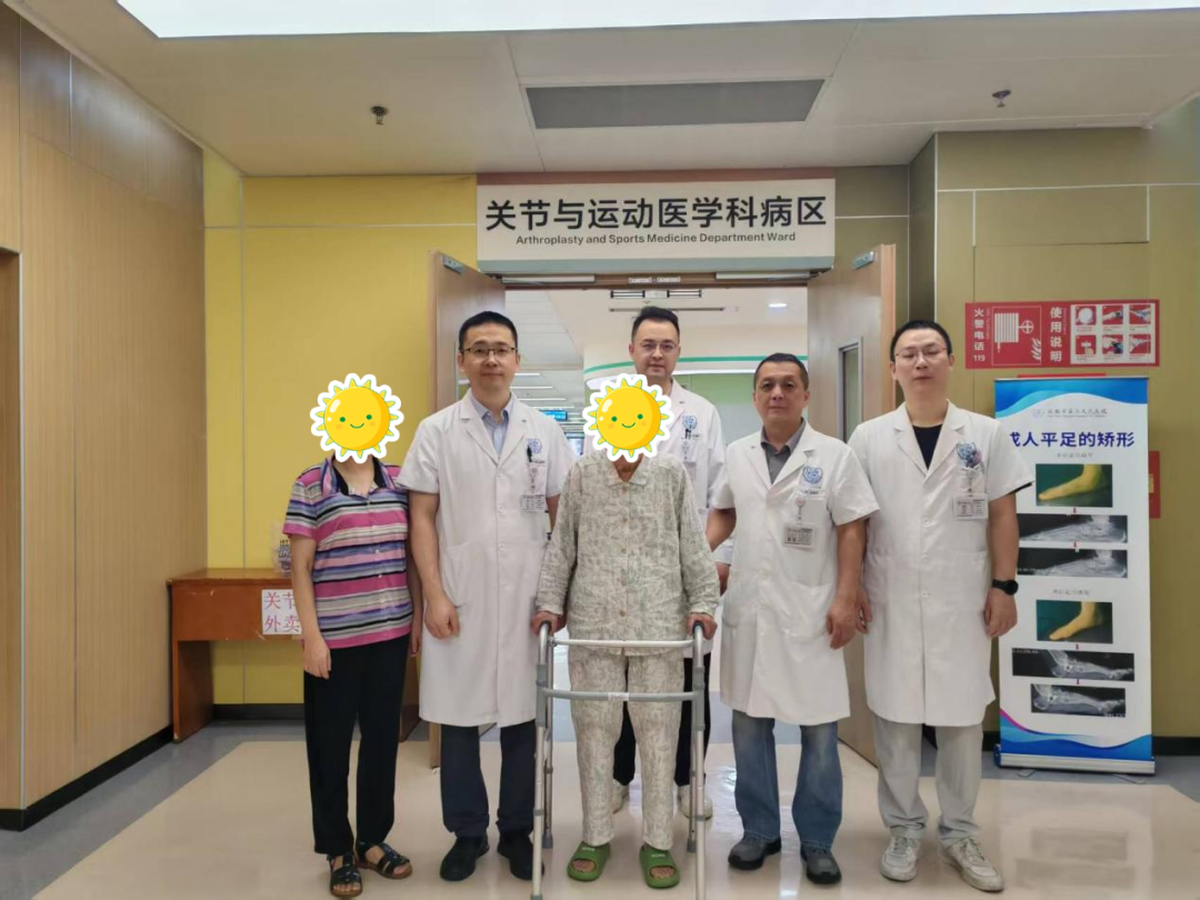 在充分的术前准备和精细的术中操作后,手术顺利完成。术后在康复治疗师和护理团队的指导和帮助下,李奶奶实现了开心下地行走,重现笑容,目前正在稳步康复中。