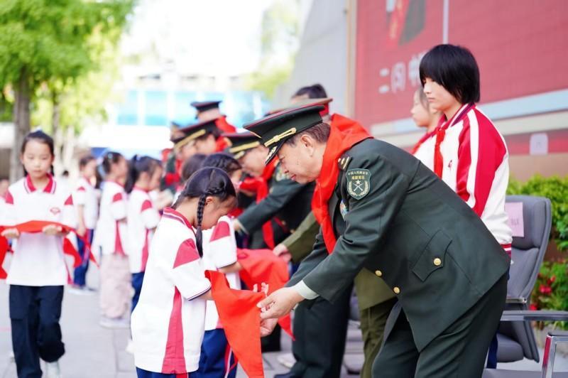 本次活动的入队仪式环节尤为瞩目。学校特邀部队退休老干部亲临现场,为二年级新队员授予并佩戴上鲜艳的红领巾。老干部们还为新建中队授旗,并向中队辅导员颁发聘书。这一环节意义深远,老英雄们亲手传递的不仅是红领巾和旗帜,更是一份沉甸甸的期望与薪火相传的革命责任,凝聚着老一辈对下一代健康成长的深切关怀。