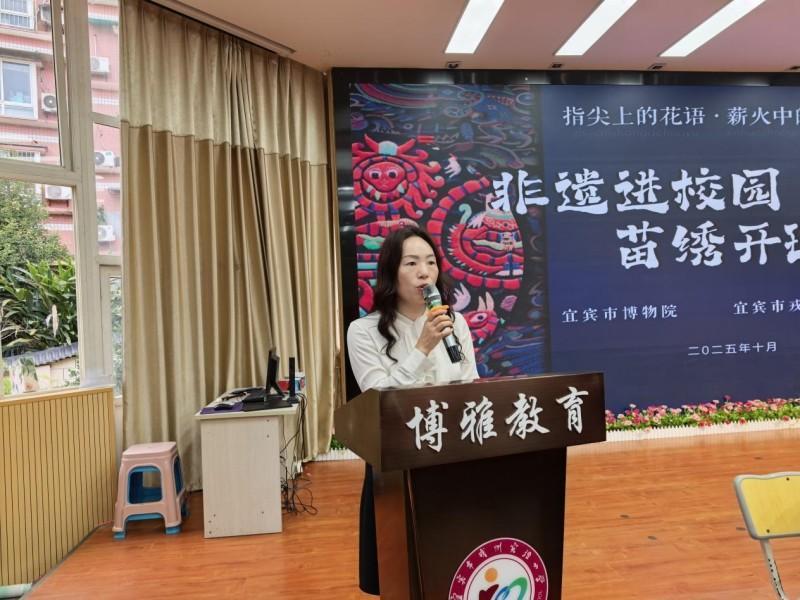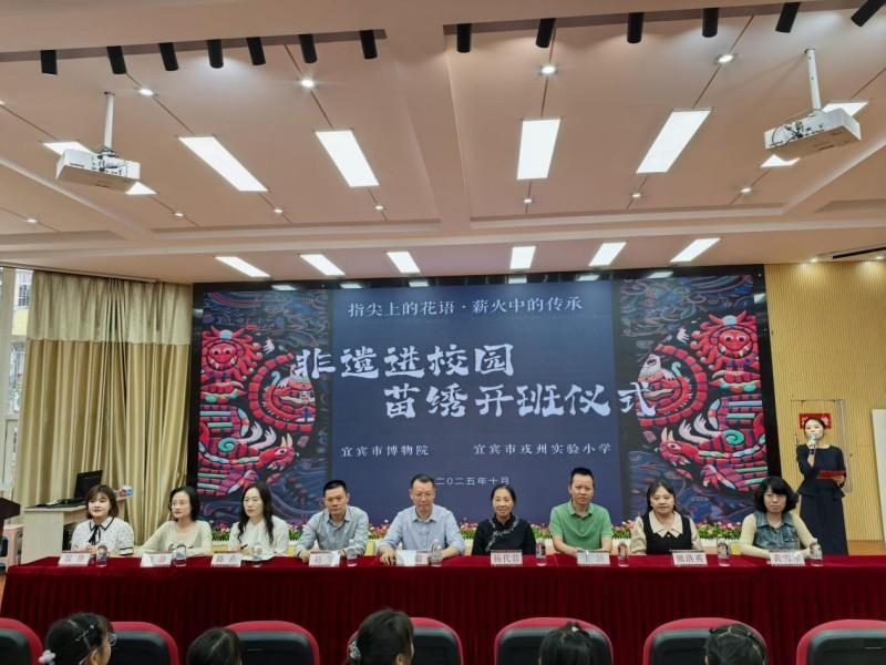 10月16日下午,宜宾市戎州实验小学联合宜宾市博物院,在学术厅举行“非遗进校园·苗绣开班仪式”,标志着苗绣非遗课程正式入驻该校。