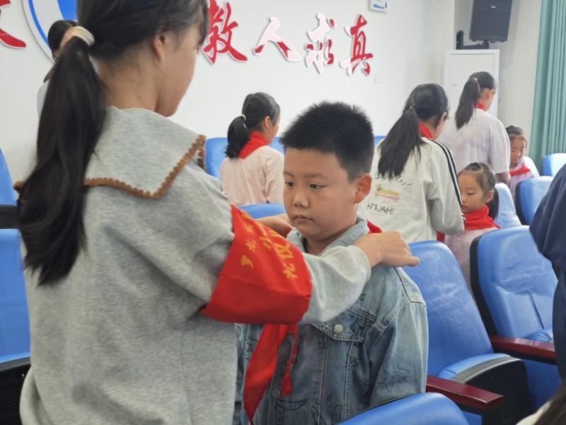 大队辅导员余俊虹老师现场宣读了组建一年级三个新建中队的决定及新队员名单。在《红领巾飘起来》的动人旋律中,老队员郑重地为新队员佩戴上人生的第一条红领巾。新队员们在大队辅导员的带领下,举起右拳,庄严宣誓。铿锵的誓言在会场回荡,表达了他们为共产主义事业贡献力量的决心。