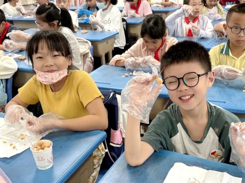 这场“臭果变形记”让孩子们明白:知识不是关在书里的,而是在思考、探索里。在动手动脑之间,他们悄悄种下了两颗神奇的种子:一颗叫“变废为宝”,它教孩子们用创意和巧思,把不起眼的东西变成惊喜;另一颗叫“团结不怕难”,它让孩子们知道,和小伙伴一起努力,再难的挑战也不怕!当大家为一颗果核磨得光滑而屏住呼吸,为一句超棒的宣传语开心击掌时——他们所获得的快乐和友谊,比任何作品都更珍贵。
