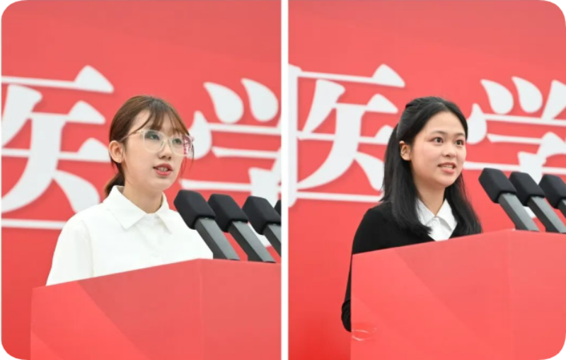 在校生代表、公共卫生学院2021级付雪怡同学鼓励新同学们在临江校区这幅全新画卷上挥洒绚烂笔墨,点亮理想之灯,扬起奋斗之帆,让梦想的种子向着自己的阳光自由而蓬勃地生长。医学影像学院2025级董思钰同学代表新生表示,将在崭新的校园成长为有理想、敢担当、能吃苦、肯奋斗的新时代青年,用实际行动为川北医的明天增添光彩,为祖国的医疗卫生事业贡献青春力量。
