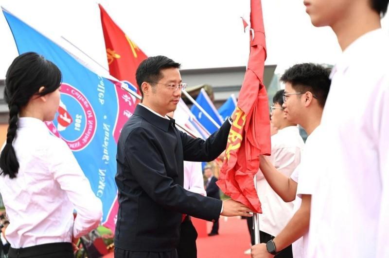 代荣阳勉励同学们,要立鸿鹄志,心怀骄阳,点亮心中的灯塔,怀爱国之心、立报国之志、增强国之能,以赤子之心筑牢报国之魂;要开万卷章,眼藏星河,既要打下扎实的专业根基,更要在丰富的社会实践中检验真知,以无尽好奇突破认知之界;要积跬步功,胸有丘壑,在风雨中淬炼筋骨,在磨砺中锻造铠甲,在矛盾中明心见性,在求索中敬天爱人,在修行中止于至善,以坚实步履砥砺坚韧之志。