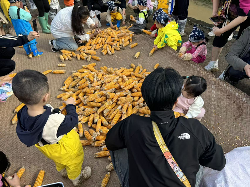 随后,孩子们又体验了剥玉米、剥黄豆的农趣。小手忙碌间,他们不仅认识了多样的农作物,更亲身感受到“颗粒归仓”的喜悦与内涵。园区“稻油轮作”模式所体现的土地循环利用与生态智慧,也通过这堂生动的实践课,深深印入孩子们的脑海。