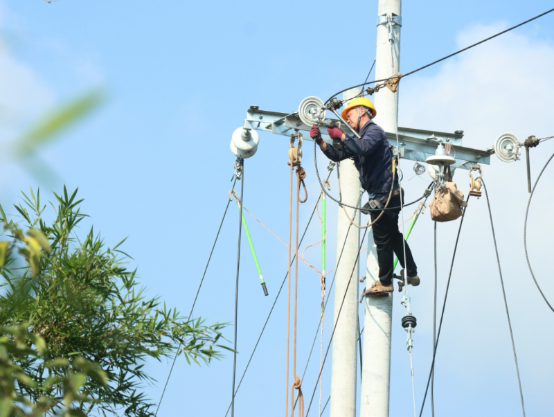 10月15日,长江边三溪口的江安县下长镇现代农业园区内一派繁忙景象,国网宜宾市南溪供电公司的电力施工人员在晚熟柑橘林里各司其职,正有序立杆、架线、安装变压器,全力推进园区10千伏用电项目建设,为橙乡特色产业发展注入强劲动力。