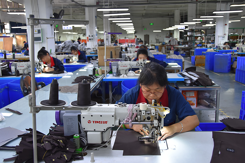 10月13日,位于自贡市荣县经开区的四川斯达特皮具制品有限公司生产车间内一派繁忙景象,机械运转声此起彼伏。9条专业生产线高效运转,工人们在各自岗位上熟练操作,一个个精致的手袋、钱包在生产线上快速流转。这些产品完成品检打包后,将发往日本市场。