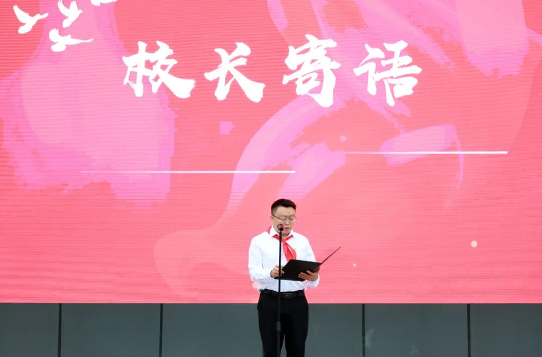 戴上红领巾,就多了一份责任;戴上红领巾,就要为它增光添彩。黎校长向队员们送上亲切寄语,提出希望和要求:“希望队员们能牢记教导,从小树立远大理想,培养优良品德,勤奋学习知识,锻炼强健体魄,努力成长为担当民族复兴大任的时代新人”。